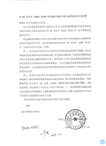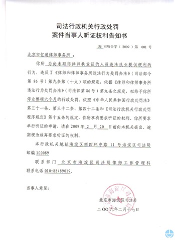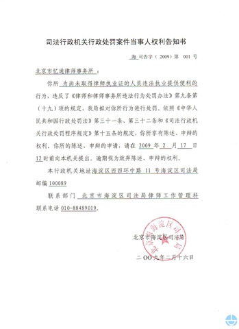 北京海淀区司法局的处罚决定。