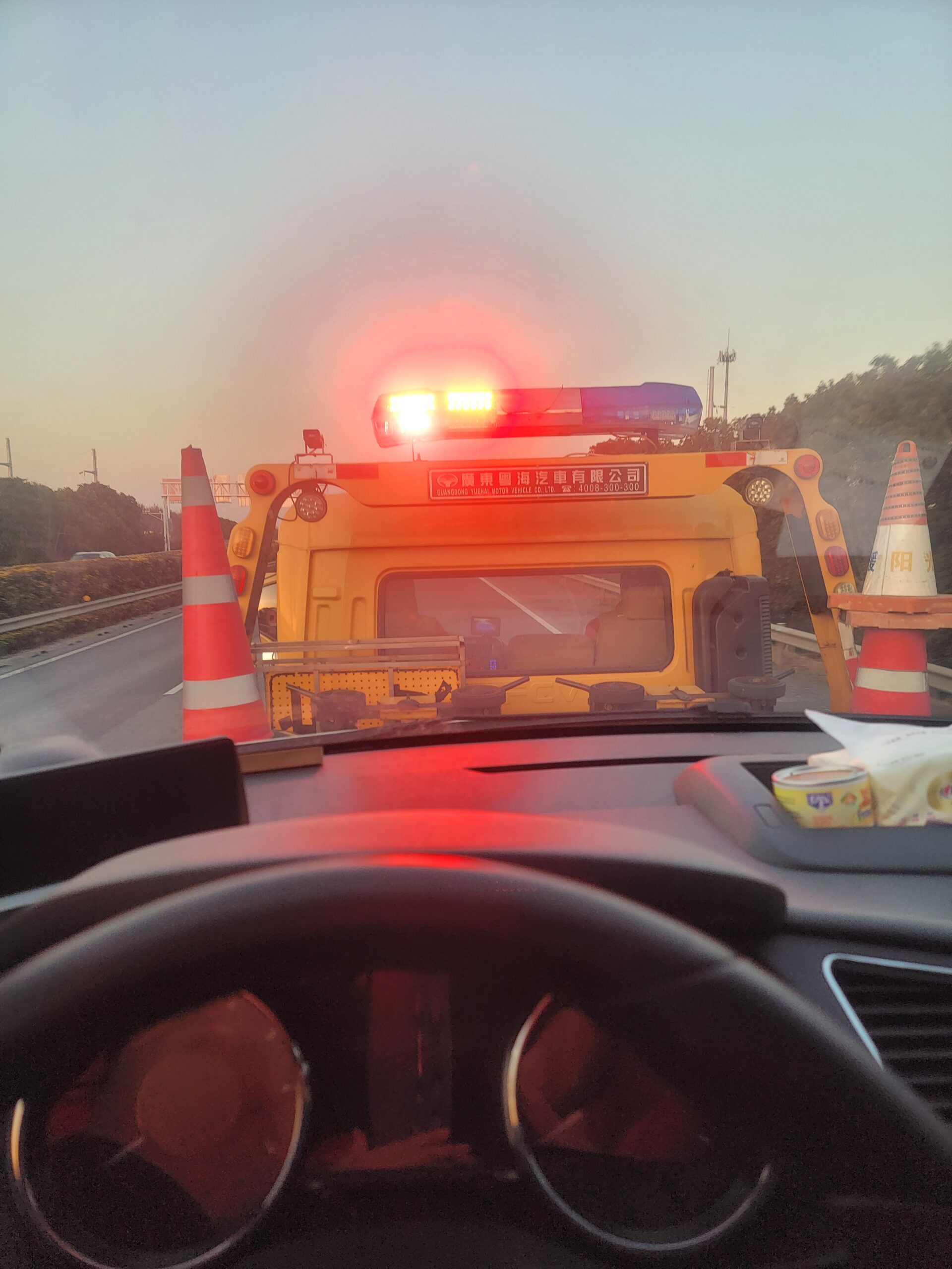 停车后,很快来了交警,帮我联系了拖车,但等了快一个小时拖车才到,把我拖到了最近的高速出口。在出口,交警说事故发生的时候,我的警示牌没有放到位,所以对我进行了处罚。心里还是有一些不开心,毕竟我是在放警示牌的时候,看到交警过来了,在后面开始放锥形筒,所以就没有往后面放够距离,而是随手放下去找他们。当然,我没有放够距离,处罚也没有毛病,吃一堑长一智,以后一定记得不管怎样,先放好安全警示牌。